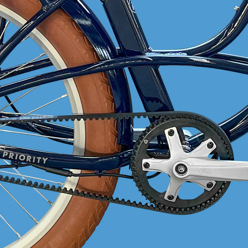 This is the only electric belt drive beach cruiser on the market! No rust in coastal conditions and no grease or regular tune-ups required. The Gates Carbon Drive belt—featured on all our bicycles—lasts 2-3x longer than a traditional chain, runs smoother, is stronger, more reliable, and whisper quiet.