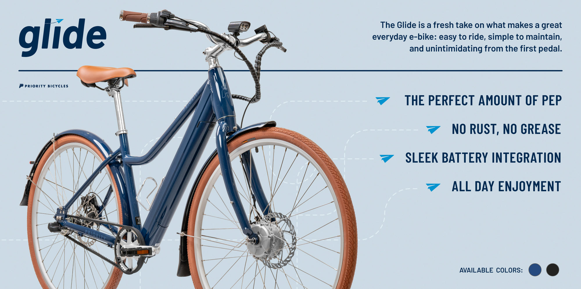 The Glide is a Class 2 e-bike, offering pedal assist and throttle support up to 20mph. You can cruise with assist, tap into the throttle for on-demand power, or ride it just like a regular bike—no power required.