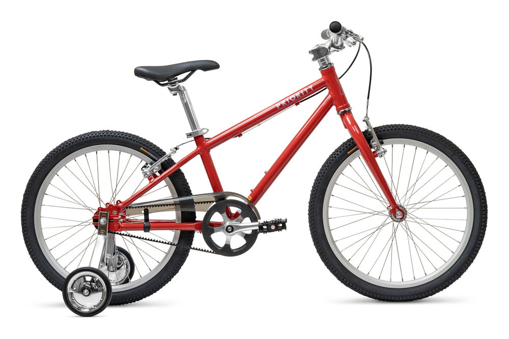 Whether its their first bike or they're graduating from our Start 16". the Priority Start 20” is designed to increase the bicycle skills and capabilities of young riders, with no grease, rust, stained hands, or heavy frames. This is the bike your child (approximately 6-11 years old, see inseam sizing guidelines) can ride for long distances comfortably. From paved neighborhood lanes to hard-packed gravel or dirt, this bicycle can tackle a wide range of surfaces with its grease-free and rust-free Gates Belt Drive, all terrain tires, and lightweight aluminum frame. Included training wheels round out the package and ensure your child can have a great time on the bike, regardless of where they're starting in their journey.